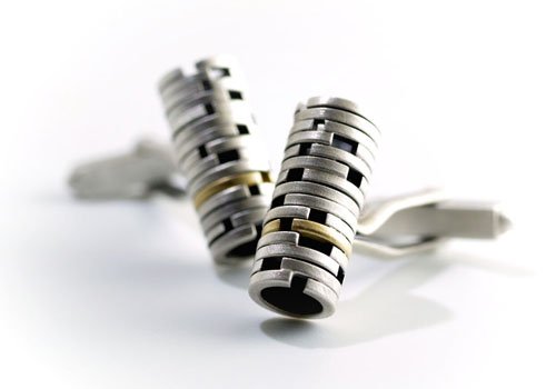 Silver and 18ct yellow gold tubular cufflinks.