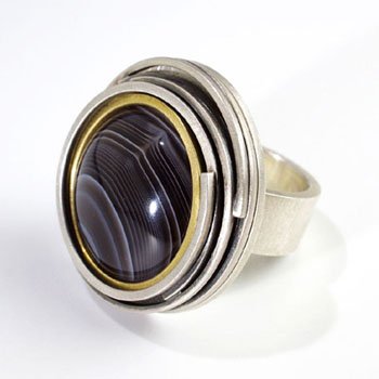 Silver and 18ct yellow gold ring set with Botswana agate.
